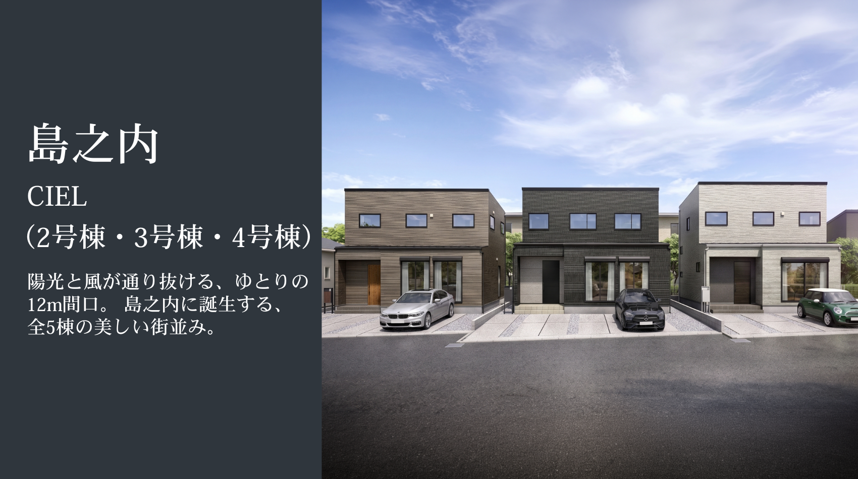 南向きで12mの広い間口を持つため、リビングの窓から明るい陽光が豊かに降り注ぎます。LDKの中央には家族で料理を楽しめる回遊動線のキッチンを配置。洗面・脱衣室の分離や、2階のWICから直接つながるサンルームなど、日々の家事をラクにする工夫も取り入れました。さらに、将来は1階だけで平屋のように暮らせる1LDK設計を採用。永く快適に住み継げる、ゆとりと安心の住まいです。